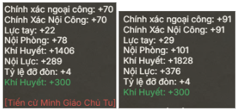 Điểm phong kình trung bình khoảng ~400 với acc ngoại công và ~300 với acc nội công.