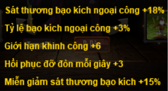 Tới khi đó hướng đi số 1 sẽ không thể giảm tlbk hoàn toàn 100% được nữa, có giảm nhưng vẫn bị bạo kích. Bắt buộc phải có dòng mgbk từ bảo vật (phỉ 4-5 dòng trở lên)