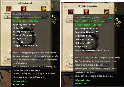 + Thủ Thái Âm Phế : + hồi nội lực ( mạch nga my) rất cần thiết để sống lâu múa skill dẻo.