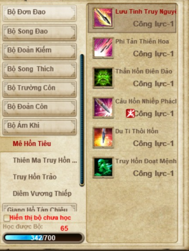 + Được phát kẹo (hỗn nguyên dịch cân đan) giúp tăng tốc luyện nội công môn phái.