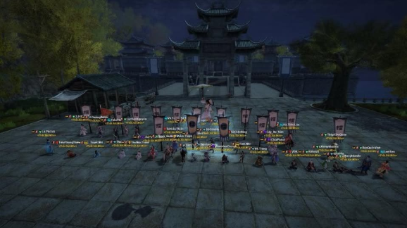 Sau khi học nội công và chiêu thức phái, các bạn hoàn thành những việc hàng ngày như luyện nhóm, diễn võ, vận tiêu, vân vân để nâng cấp kinh mạch và nội công sớm nhất có thể. (Hình - địa điểm luyện công
