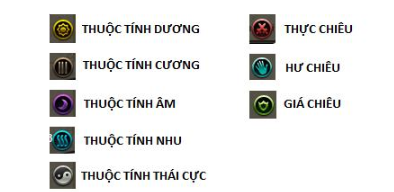 - Gồm 5 loại thuộc tính: Âm, Nhu, Dương, Cương, Thái Cực.