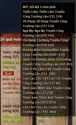 - Sau khi môn phái hoàn thành Nhiệm vụ Cửu Âm Chí Nội Công 2, nhiệm vụ để đổi nội công 2 môn phái đó sẽ được mở ra. Có 2 cách để học được nội công 2 là: