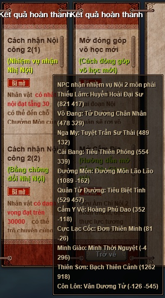 Yêu cầu: Nội công 1 tầng 30 trở lên Xem hướng dẫn