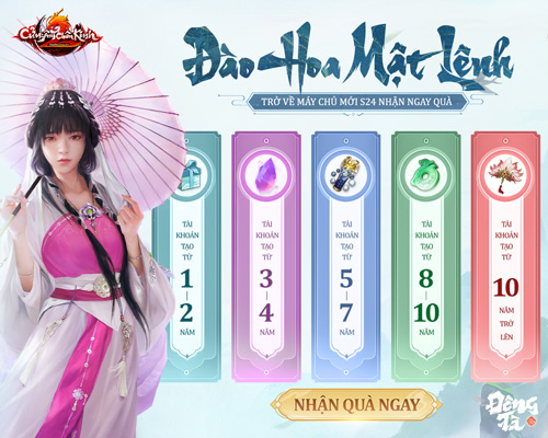Tuy nhiên, giang hồ luôn luôn đổi mới, các thế lực biến ảo khó lường, việc trở lại chốn giang hồ binh biến sau một thời gian dài rửa tay gác kiếm là không hề dễ dàng. Chính vì vậy, sự kiện Đào Hoa Mật Lệnh - rinh quà Anh Hùng Thiếp sẽ giúp những nhân sĩ từng quy ẩn nhận được những hỗ trợ hữu ích, giúp hành trình tái xuất giang hồ thêm phần thuận lợi.
